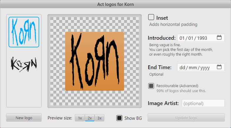If a band has used several logos across their career, qplanner will automatically select the best logo to use based on the dates given for each logo's use.