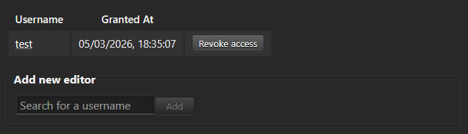 Editors will be able to view who the other editors are, but cannot revoke or grant editor status.